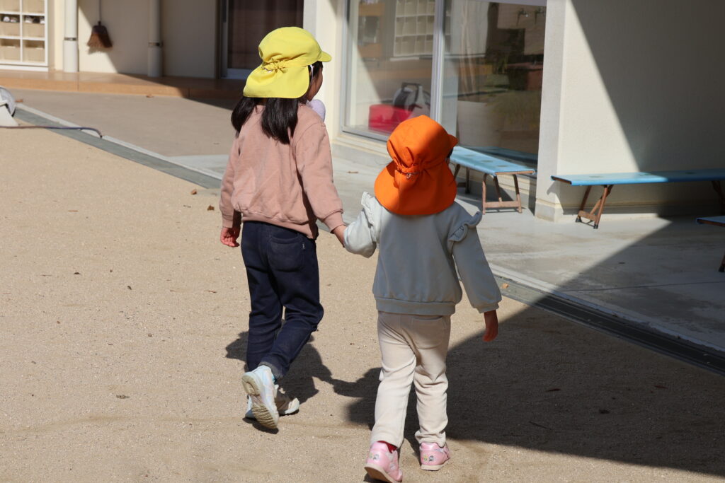 (画像は、戸外で異年齢児がかかわっている様子です)