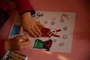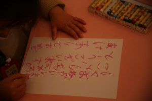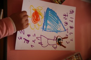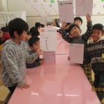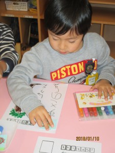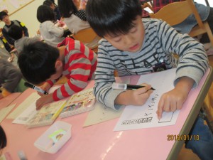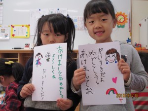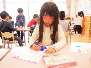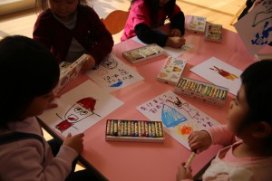 年長組をびっくりさせようと、年賀状のお返事作り☆