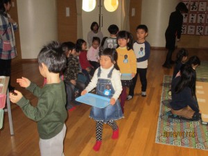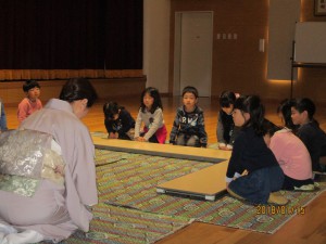 子どもたちが、もてなす側ともてなされる側に分かれ、