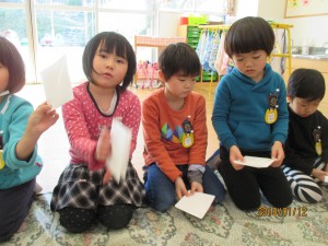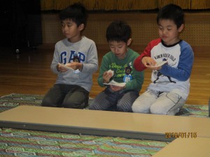 年長組では、毎年この時期に上田宗箇流の先生の計らいでお茶会をしています。