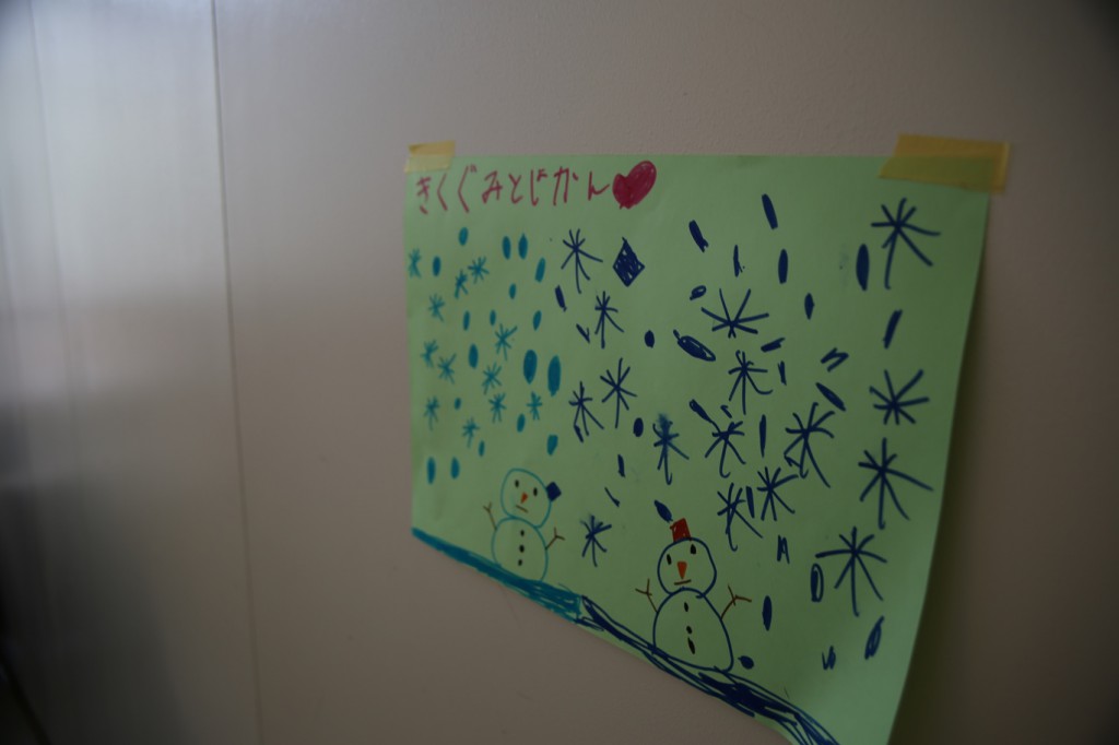 貼られたポスターには、『きくぐみとしょかん』とあります。