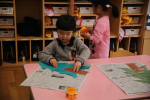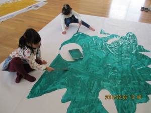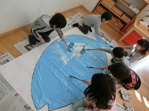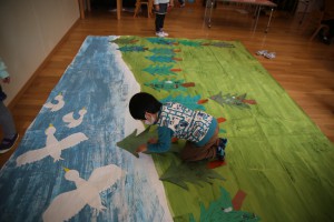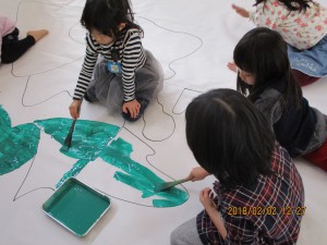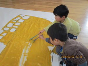 友だちと力を合わせて塗ったり、貼ったり、