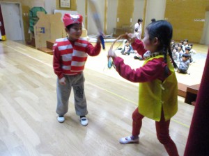 他のクラスと劇遊びを見せ合う中で、