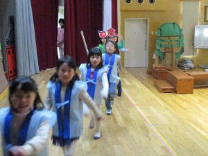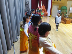 年中や年少児は、年長の迫真の演技に釘づけです。