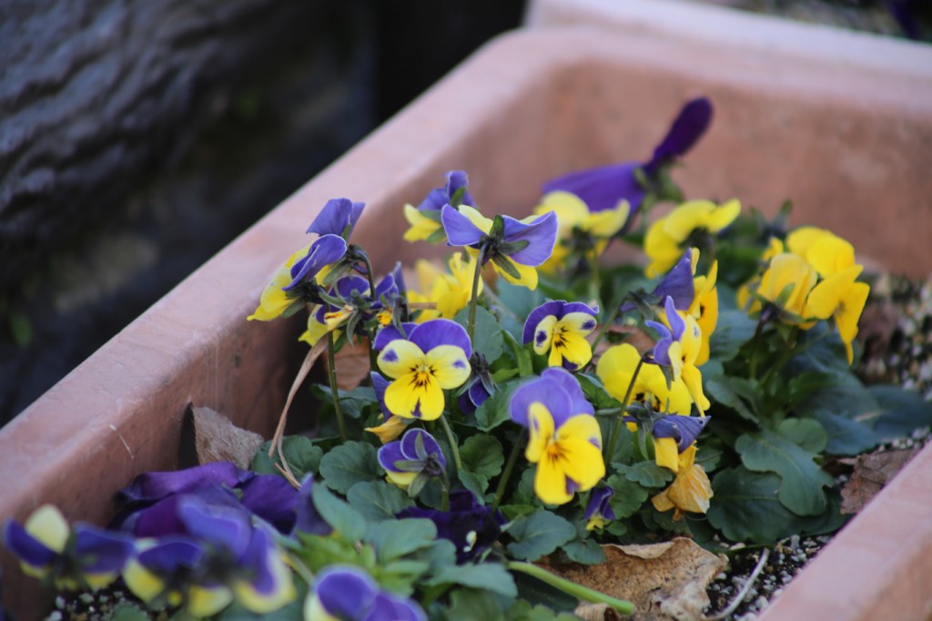 戸外のプランターのビオラも、