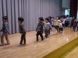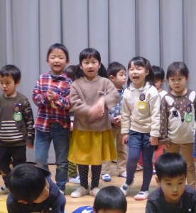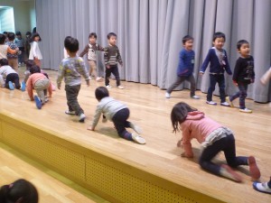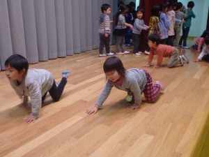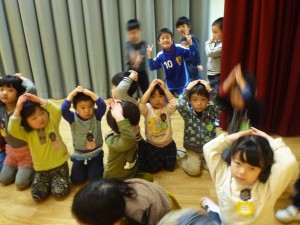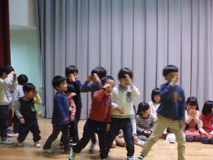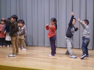 実際に真似て体で心で感じて楽しんだ年少さん。