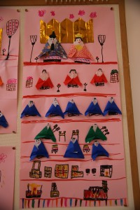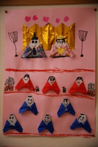 折り紙を使って作ったおひなさまが嬉しそうに鎮座していました。