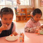 早速お部屋に帰って、おいしいケーキとジュースをいただきました。
