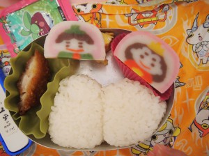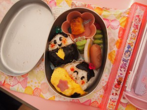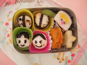 昼ごはんのお弁当の中味が、おひなさまとおだいりさまもいて、