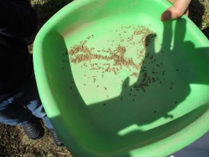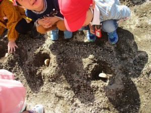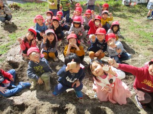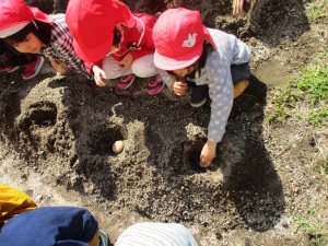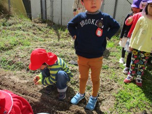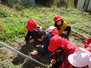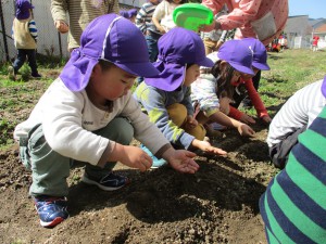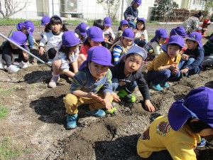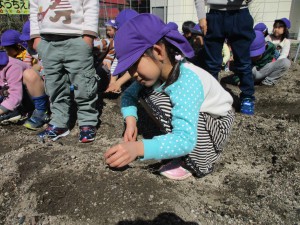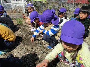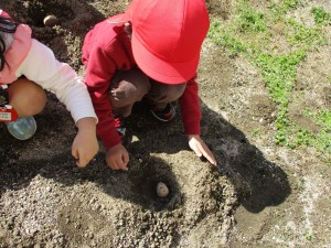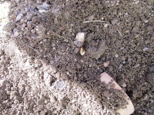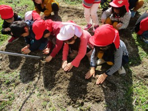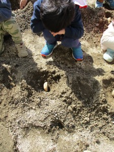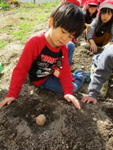 現業員さんに、「芽を上にして植えてみよう」と言われて、