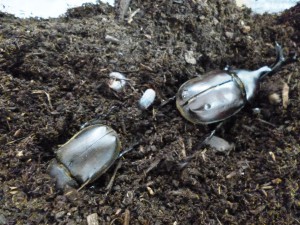 (中央辺りに見えるのが幼虫で、土の中には、まだ沢山の幼虫がいます)