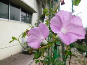 かろうじて、生き残った朝顔が、淋しそうに咲いています。
