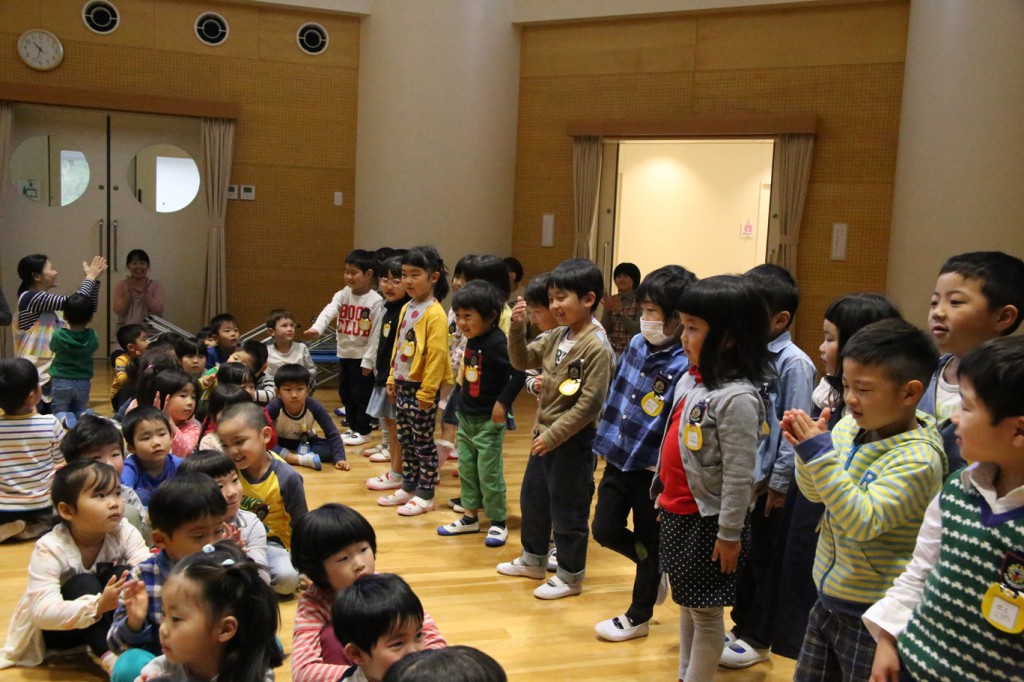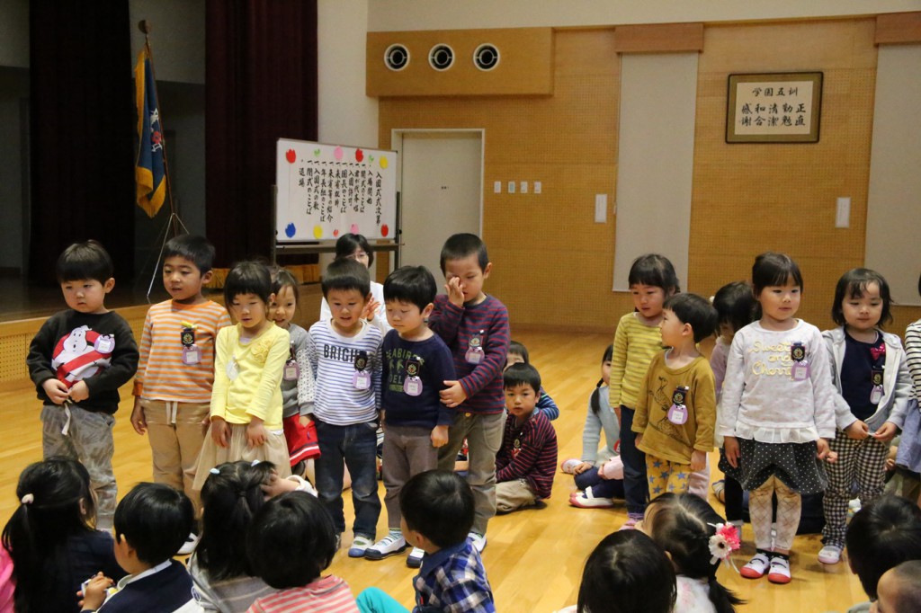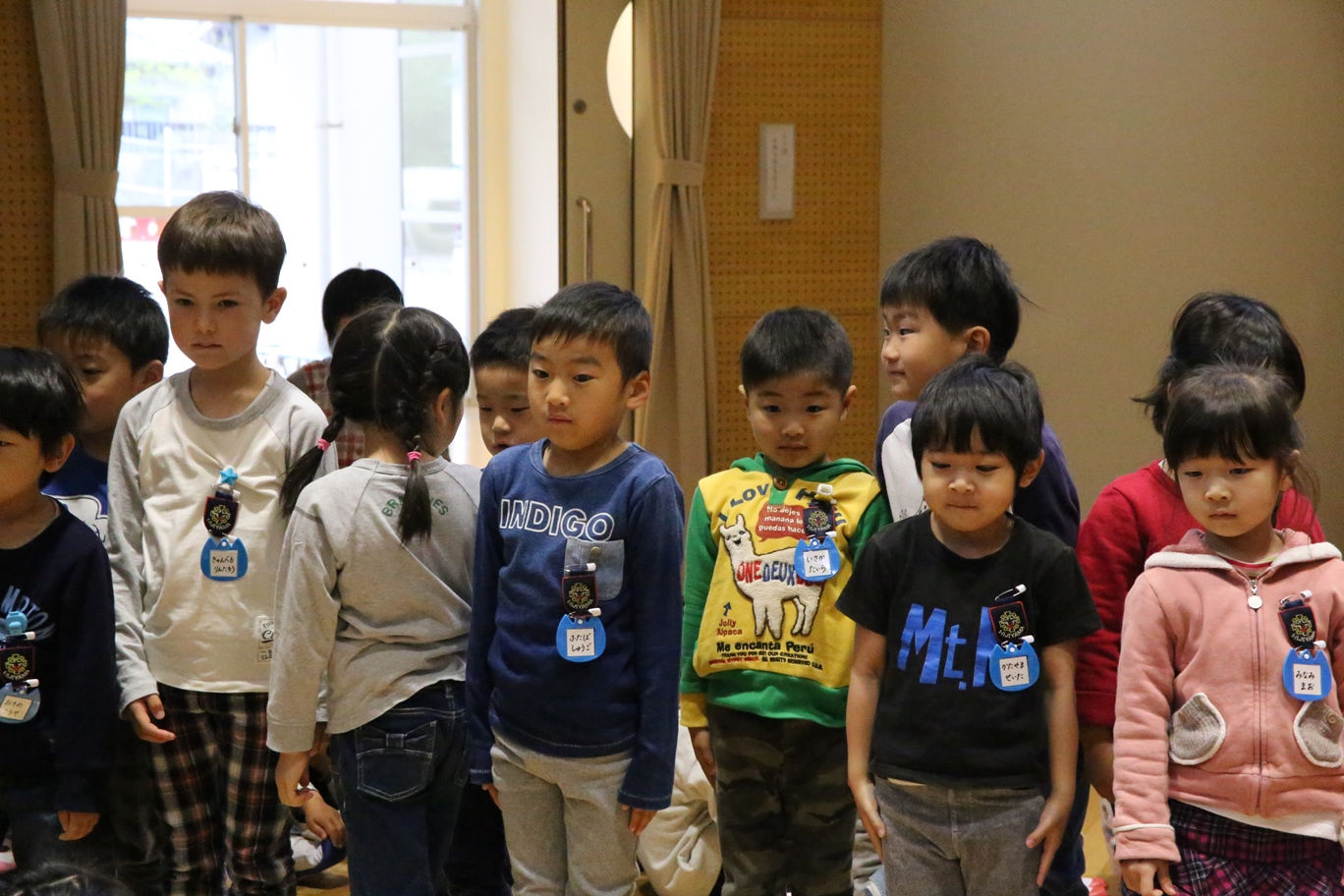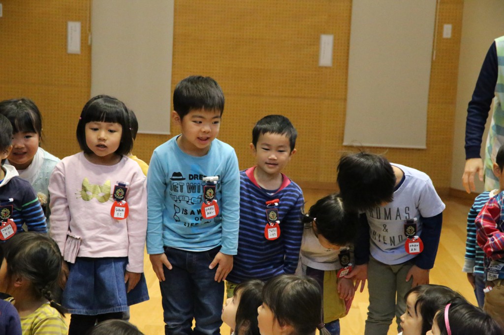 北園舎で一緒に過ごすことになる年長さんにごあいさつ。
