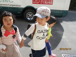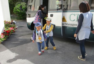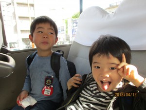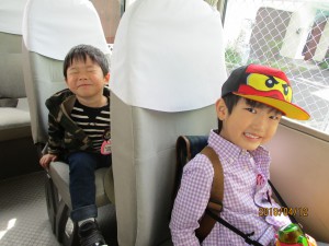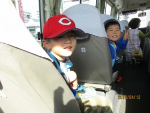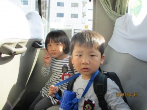 バスの中では、異年齢児とのかかわりも持つことのできる時間