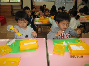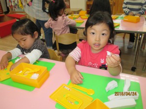 「ほうちょうでおりょうりよ」 「ぼくはだんごだよ」