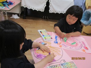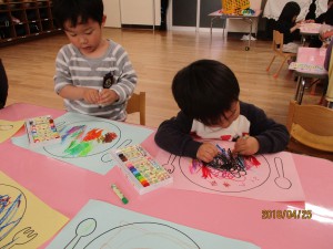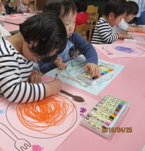 年少さんクレパス遊び