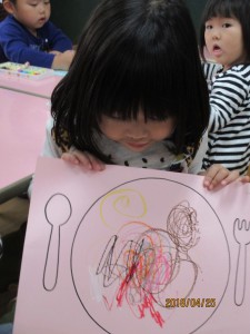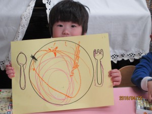 大きなお皿に、どんなごちそう描こうかな?