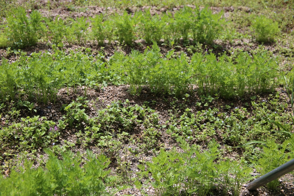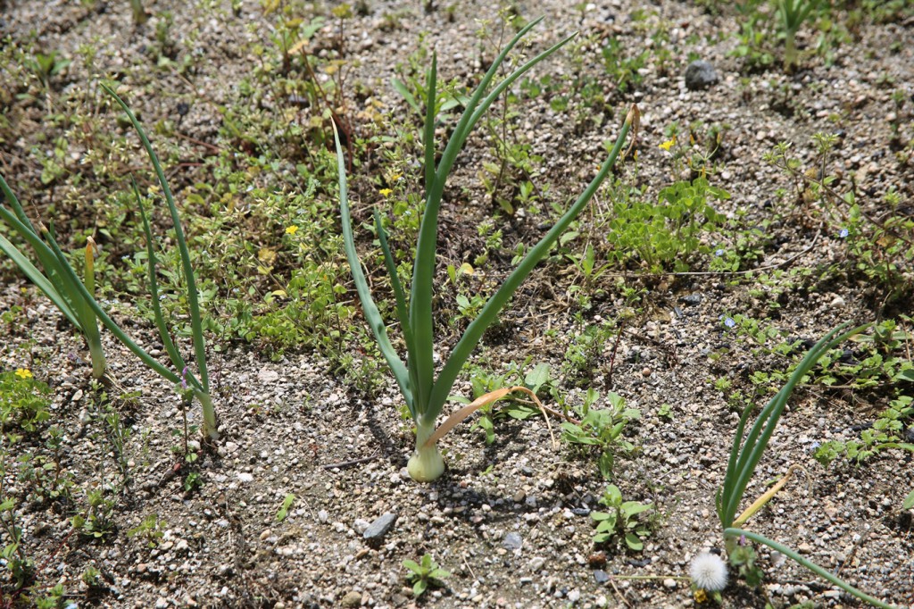 おー、玉ねぎ。ねぎの下に玉ねぎがのぞいてるよー。