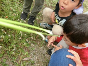 「ここ何かいるよ、見て見て!!」